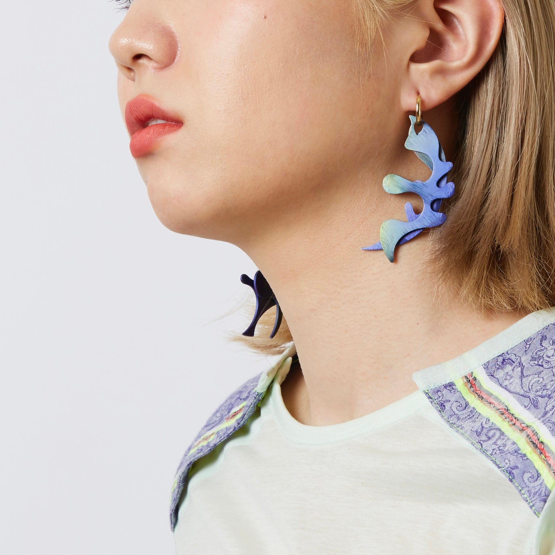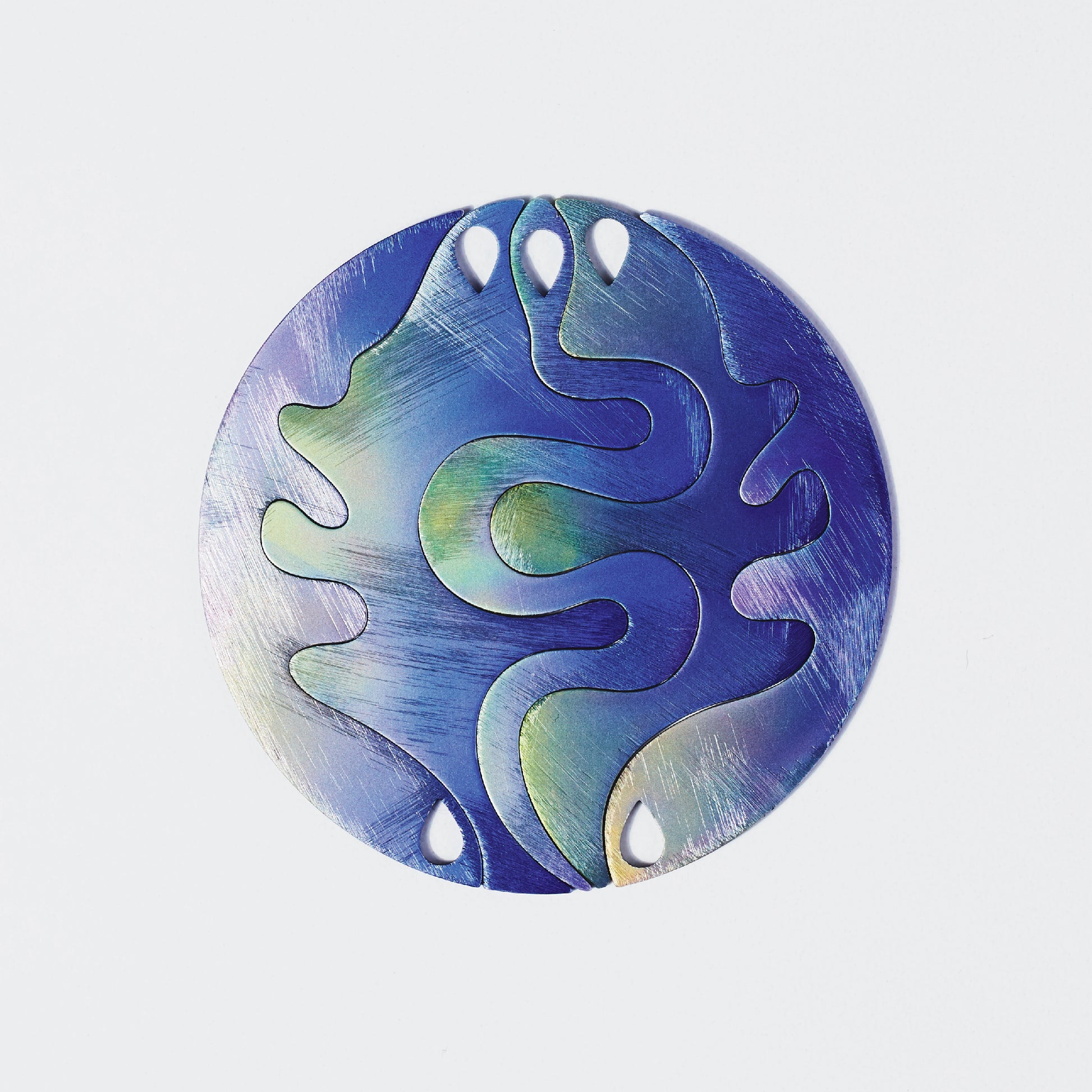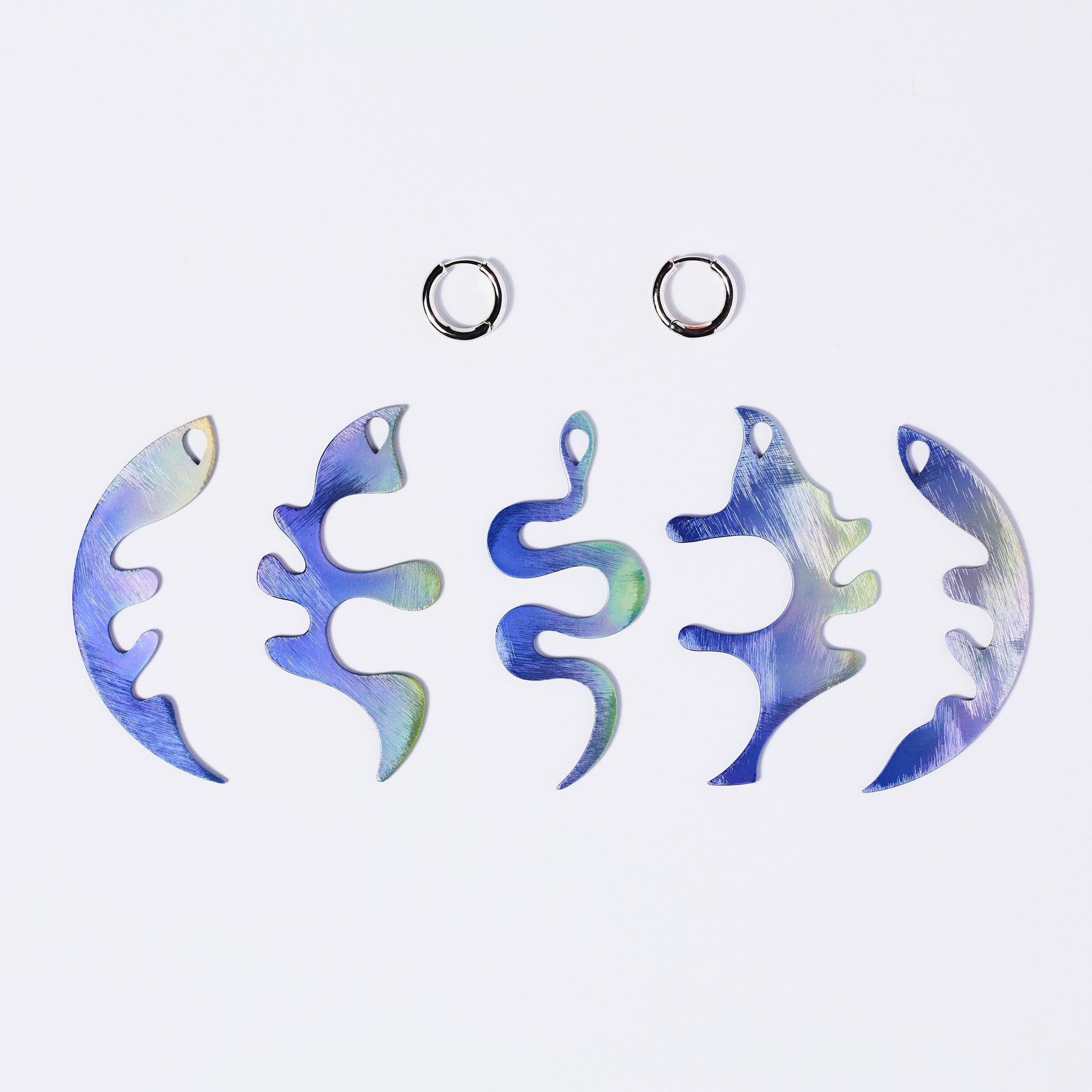 生命力の象徴である蛇が、地球に生まれる姿を表現した「Rebirth」。表面に手加工でテクスチャーを入れ、さらに一つ一つグラデーションに染め上げるという、非常に手の込んだデザインです。