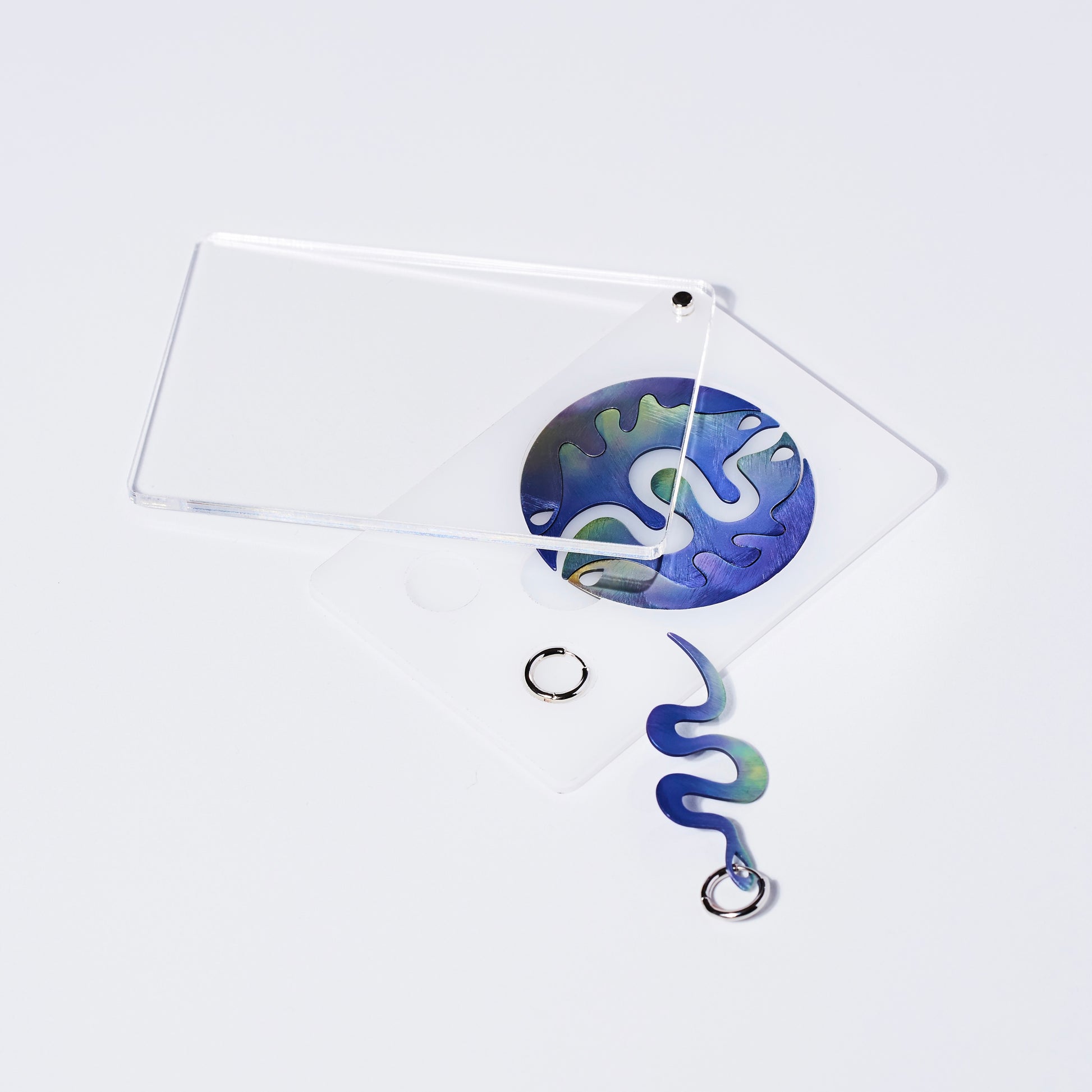 <セット内容> 装飾パーツ×5個、リングピアス or リングイヤリングパーツ×1セット、スライド式アクリル収納ケース(白)、オリジナルタロットカード、磨き用クロス 、ショップカード、ケアタグ